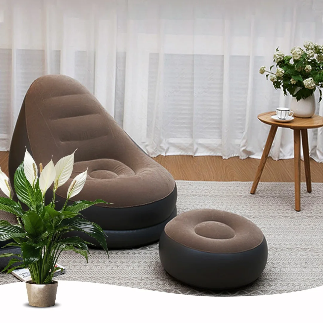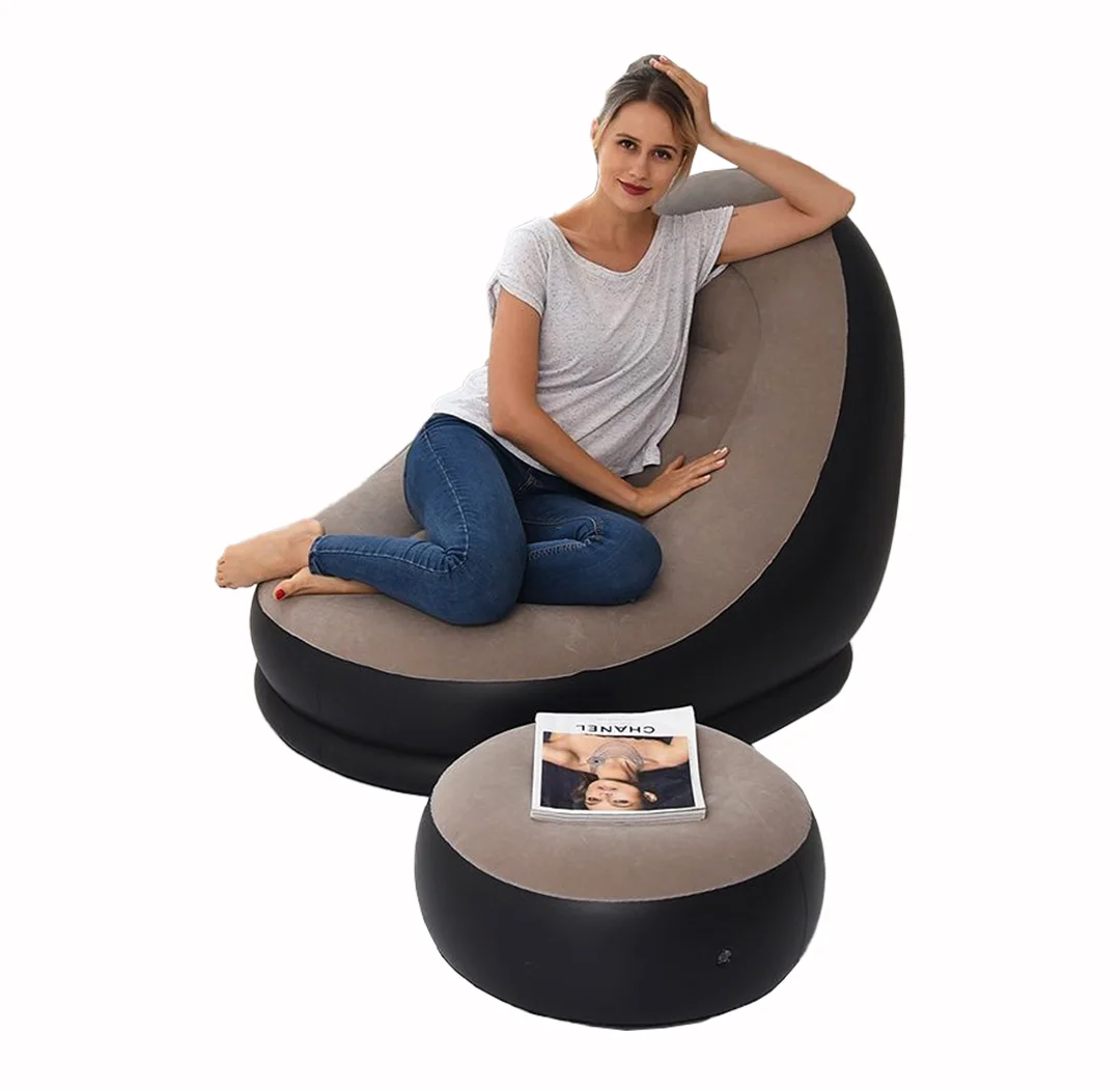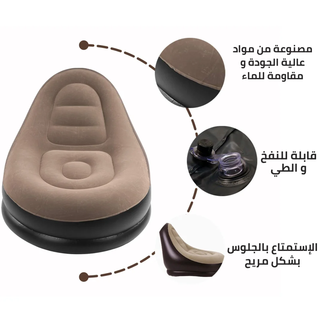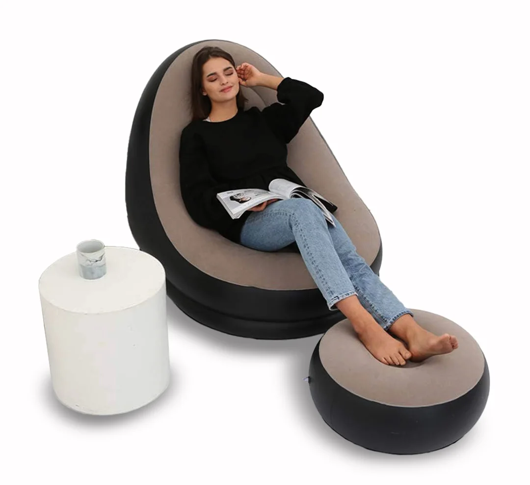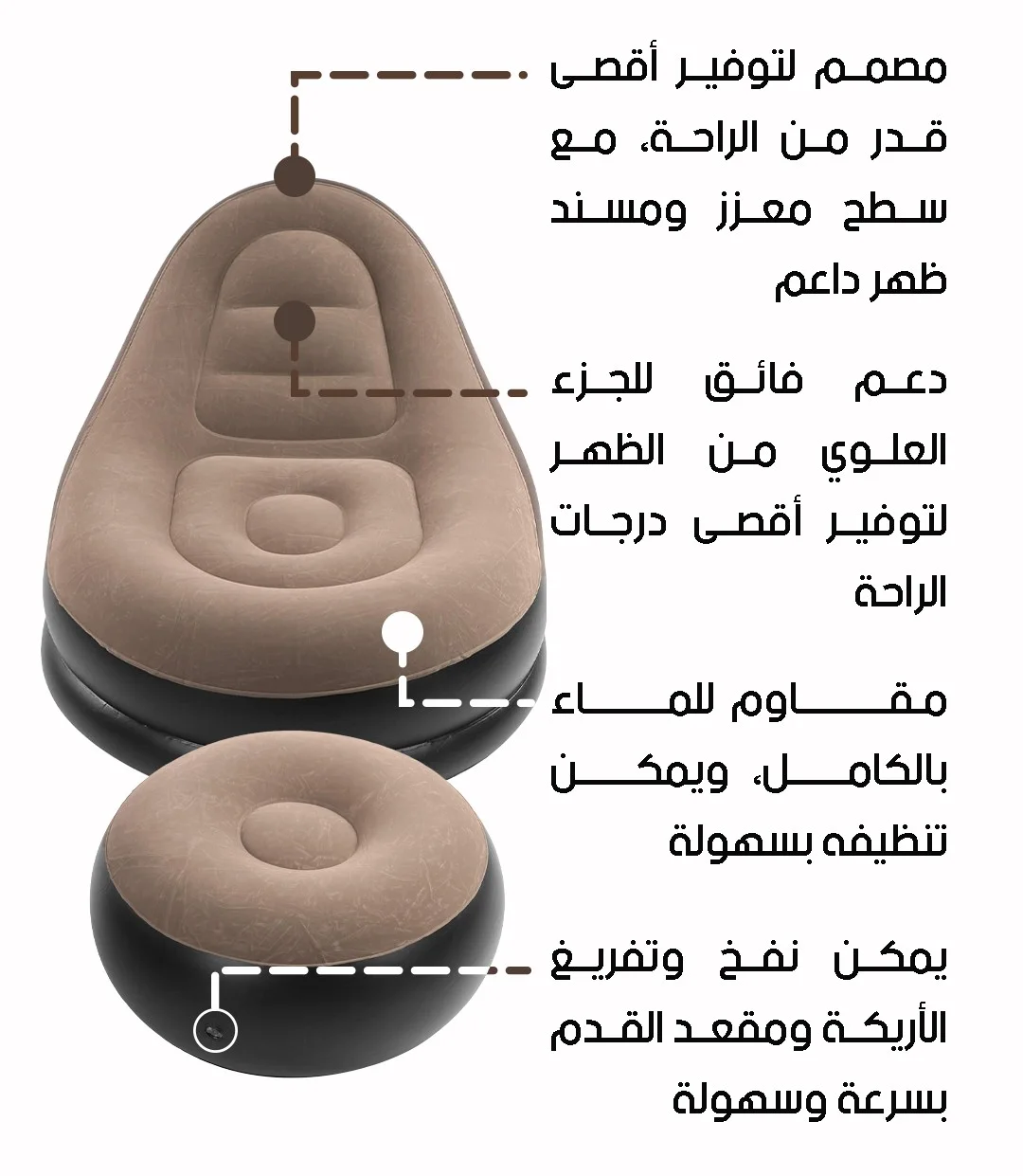 أريكة الإسترخاء القابلة للنفخ و الطي مع مقعد للقدم هي قطعة أثاث مميزة تجمع بين الراحة الفائقة و التصميم العصري. لتلبية إحتياجاتك و تقديم تجربة جلوس لا مثيل لها